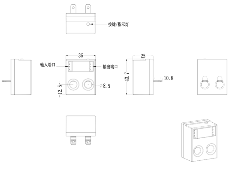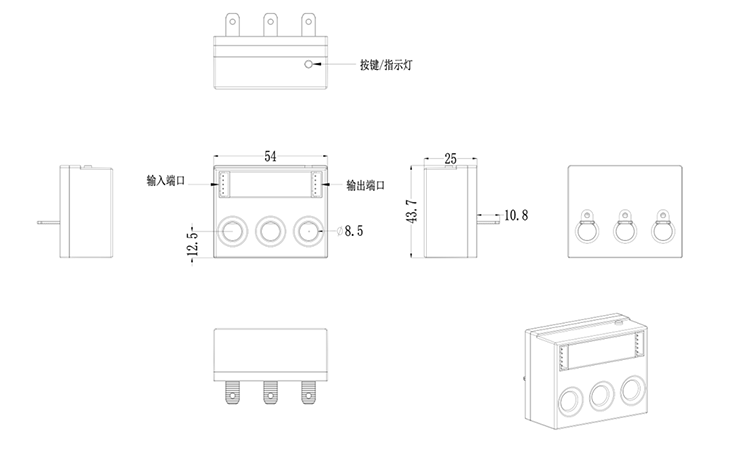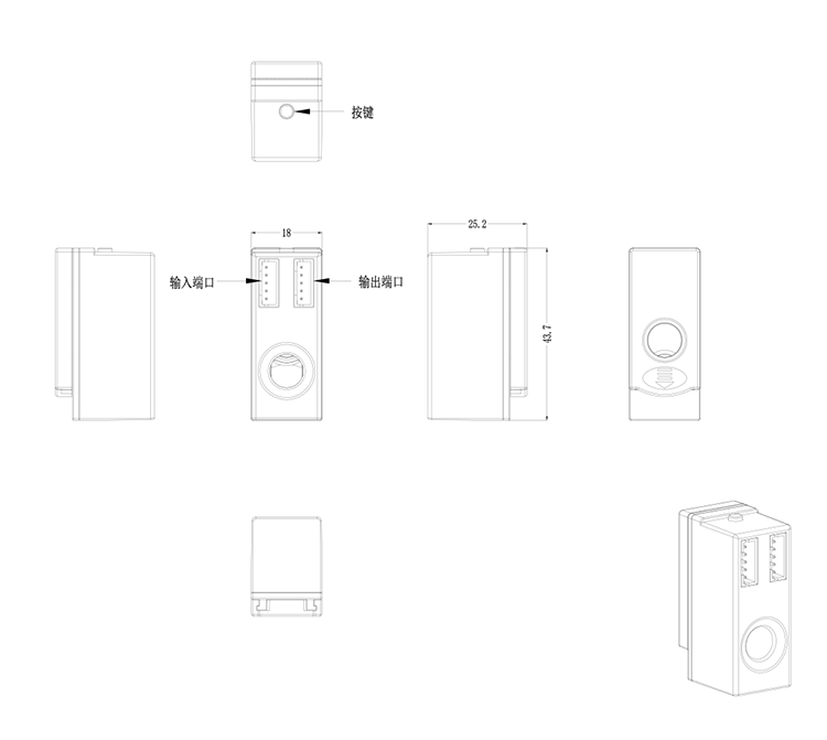XWS-D组合式电气火灾监控探测器产品外形示意图