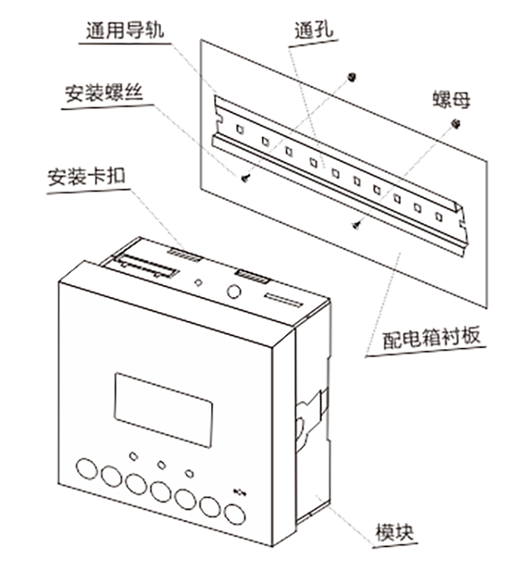XWS-D组合式电气火灾监控探测器导轨式安装示意图